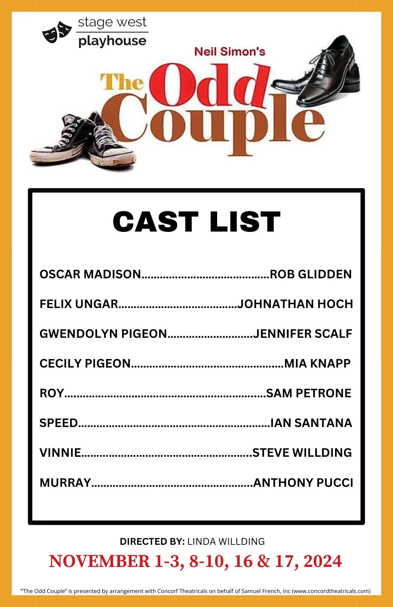 Stage West Playhouse and Director Linda Willding are excited to present Neil Simon's The Odd Couple!